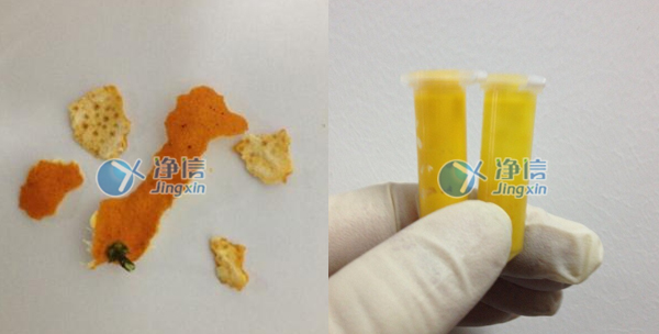 2、将采取到的橘子皮样品,放入实验室离心管中