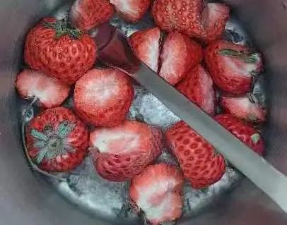 3、将液氮冻好的草莓放入匀浆罐中,将盖子压上。