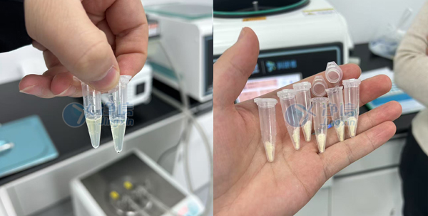 实验前样本为浅黄色透明液体,体积较大。实验后样本体积明显减小成固体状,样品完全浓缩干透。整个过程在低温下进行,真空下快速蒸发的同时,很好的维护了蛋白活性。