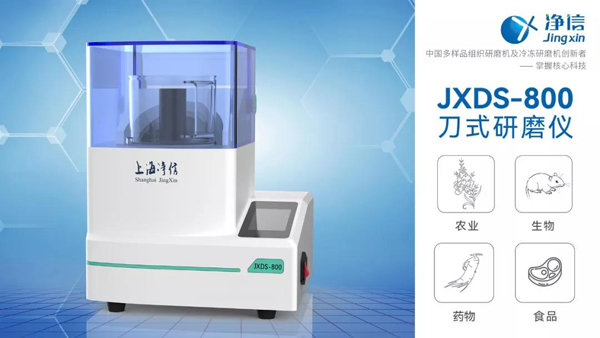 采用上海净信刀式研磨仪JXDS-800 对样品进行预处理, 可以进一步提高样品的均一化程度, 更好地保留分析目标化合物, 为食品样品中待测组分的提取、净化、浓缩, 进行定量、定性分析检测做好充分准备, 保证结果的准确性和重现性。
