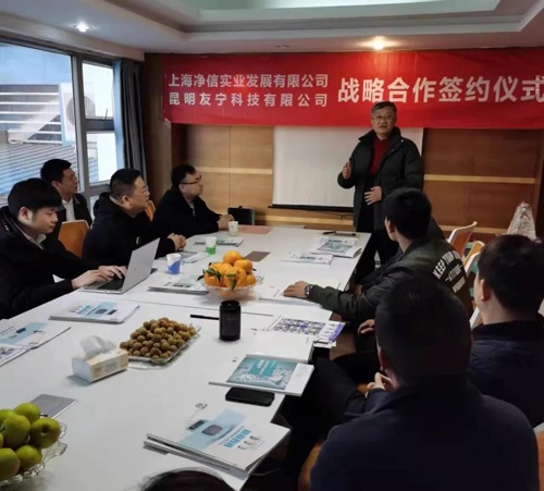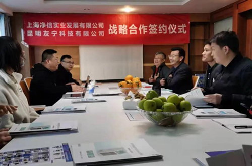 12月28日,上海净信与昆明友宁科技有限公司举行战略合作签约仪式。以进一步加深双方战略合作伙伴关系,营造更优质的云南市场环境及氛围,达成以“共赢、共创、共享”的理念。上海净信实业发展有限公司吴总经理及各系列产品总监, 昆明友宁科技有限公司邓总经理及各部门负责总监出席并见证了本次签约。
