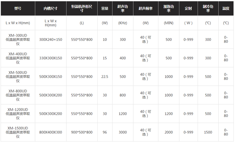 1.精密清洗;2.样品制备的前处理:液体脱气、混合、均质等;3.中药材的溶解、颗粒的分散及乳化提取;4.样品的萃取。液体温度恒温控制适合于对样品温度要求精准的实验。